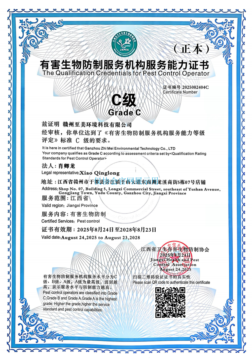 经营范围:经营范围 许可项目:农药批发,农药零售(依法须经批准的项目,经相关部门批准后在许可有效期内方可开展经营活动,具体经营项目和许可期限以相关部门批准文件或许可证件为准)一般项目:病媒生物防制服务,居民日常生活服务,白蚁防治服务,专业保洁、清洗、消毒服务,城市绿化管理,室内空气污染治理,林业有害生物防治服务,建筑物清洁服务,农作物病虫害防治服务,卫生用杀虫剂销售,互联网销售(除销售需要许可的商品),化肥销售(除依法须经批准的项目外,凭营业执照依法自主开展经营活动)
