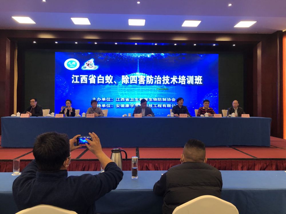2020年11月13日,江西省卫生有害生物防制协会在安徽康宇生物科技工程有限公司的大力支持下,于南昌市成功举办了全省白蚁防治技术培训班,省协会免费为全省130余家PCO企业培训了230余名管理者及有害生物防治专业人员。培训班邀请了国家卫生有害生物防制协会专家委员会委员、原广东省白蚁学会理事长钟俊鸿教授,国家卫生有害生物防制协会专家委员会委员、国家卫健委卫生有害生物防制标准专业委员会委员冯向阳教授为学员授课,省协会领导浦志龙、邹衷琴、詹华成及安徽康宇生物科技工程有限公司总经理芮有春出席培训班开班仪式。