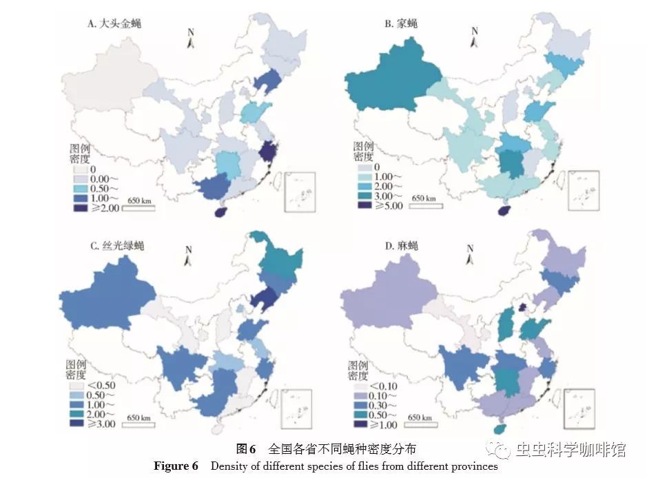 4. 不同省份蝇类密度