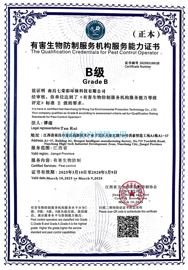 经营范围:病媒生物防治服务,病媒生物密度控制水平评价服务,病媒生物密度监测评价服务,林业有害生物防治服务,白蚁防治服务,消毒服务,检验检测服务,室内环境检测等