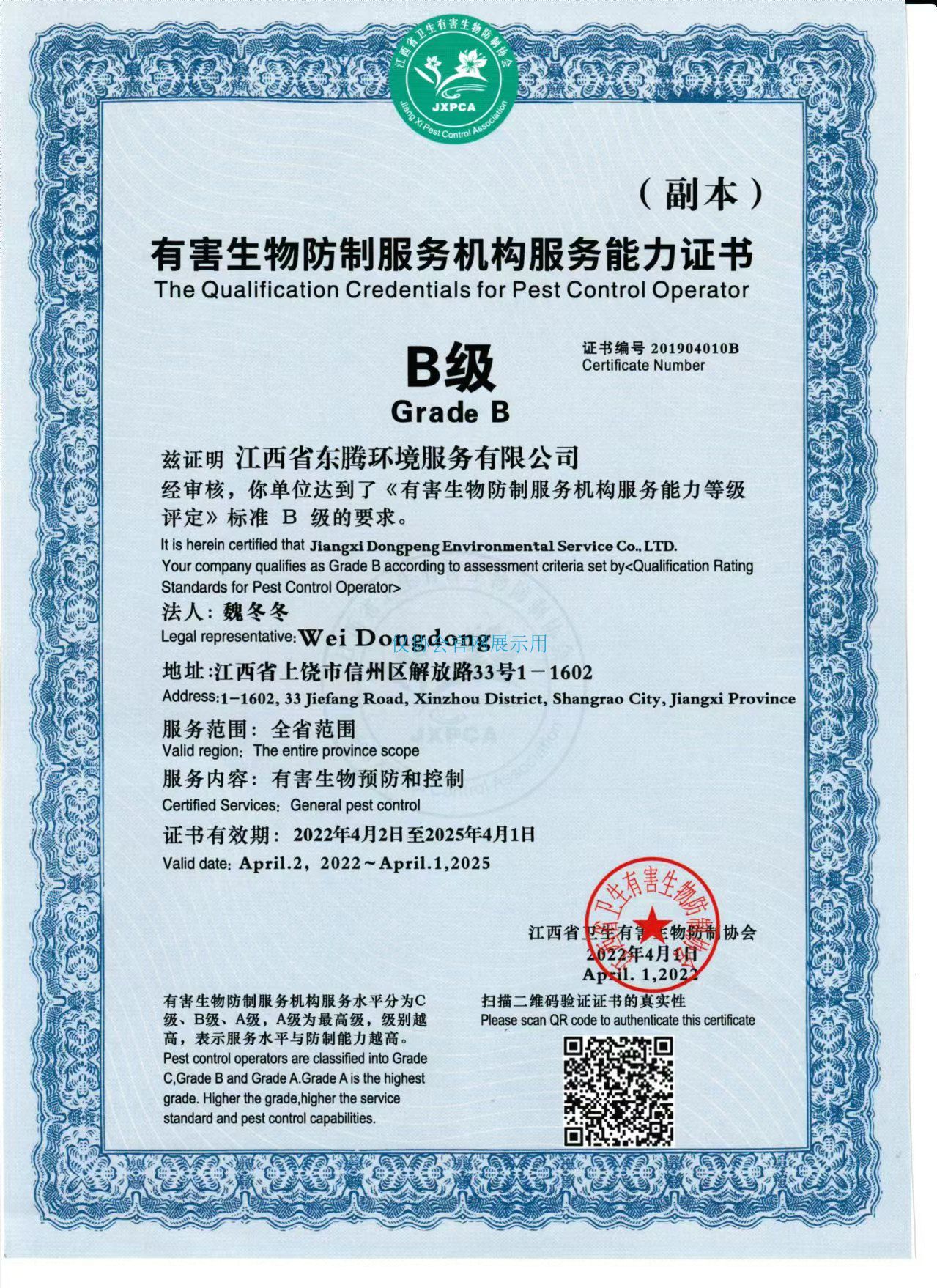 能力证书编号:201904010B