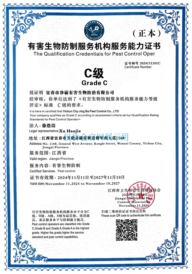 成立时间:2017年06月26日 人员情况:技术员3名管理人员2名 取得成绩:给万载县多所学校,企、事业单位提供四害防治服务,给万载县城区园林白蚁防治服务。