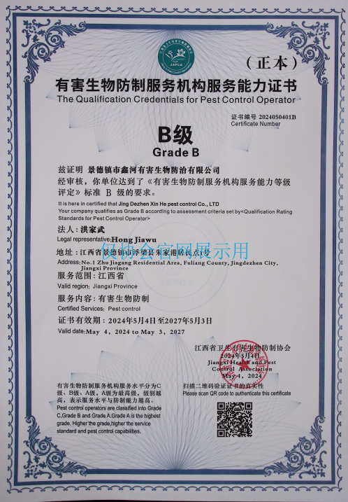 单位名称:景德镇市鑫河有害生物防治有限公司