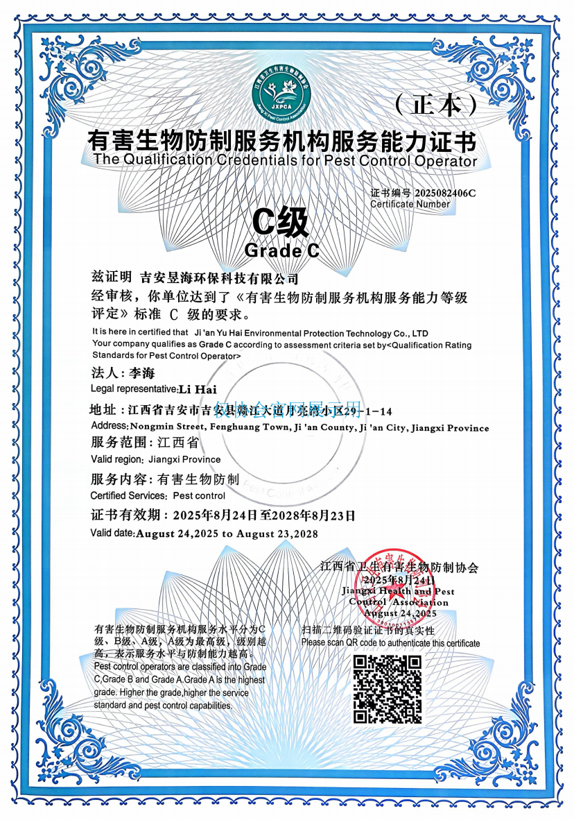 吉安昱海环保科技有限公司 经营范围:专业灭白蚁、灭蟑螂、灭老鼠、灭蚊蝇、灭臭虫、防疫消毒、驱蛇、甲醛检测治理、地面防滑等业务。 公司秉承安全、环保、高效的服务宗旨,竭诚为你的工作生活保驾护航! 服务热线:18870688188